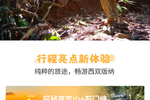 之后我们驱车前往版纳第二大少数民族僾尼人的村寨曼么村体验特色【穿越雨林徒步体验】(4公里,道路平缓,户外小白也能轻松Get),这里充满自然与野性的原始气息,感受自然带来的自由与快乐!清澈无比的溪流,层层叠叠的绿树,千奇百味的热带水果,野外的蔬菜,在溪流冲刷下奇特的巨石,石缝里的花花草草,户外深潭小瀑布,水里触碰你脚跟的小鱼……