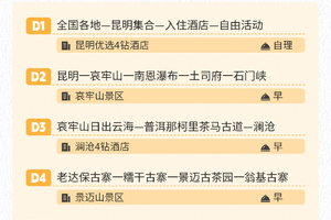 温馨提示:当天抵达昆明时间大概下午19:00左右,如当天火车或航班返程,建议预订当天21:30点以后航班或火车。
