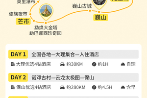 3、大理各景点离市区较近,乘坐公交或打车均很便利,如需单独安排车辆联系我司客服。