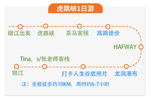 早餐后集合,从丽江乘车出发,约1.5小时抵达虎跳峡镇,进入景区后乘车前往茶马客栈开始一天的徒步之旅。