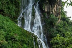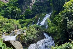 瀑布层层叠叠,缓缓而下,清秀而神秘,山谷之下是奔腾的普渡河,景色奇绝壮美水质清澈,可直接饮用,瀑布从近百米的悬崖一跃而下,景色独特特。