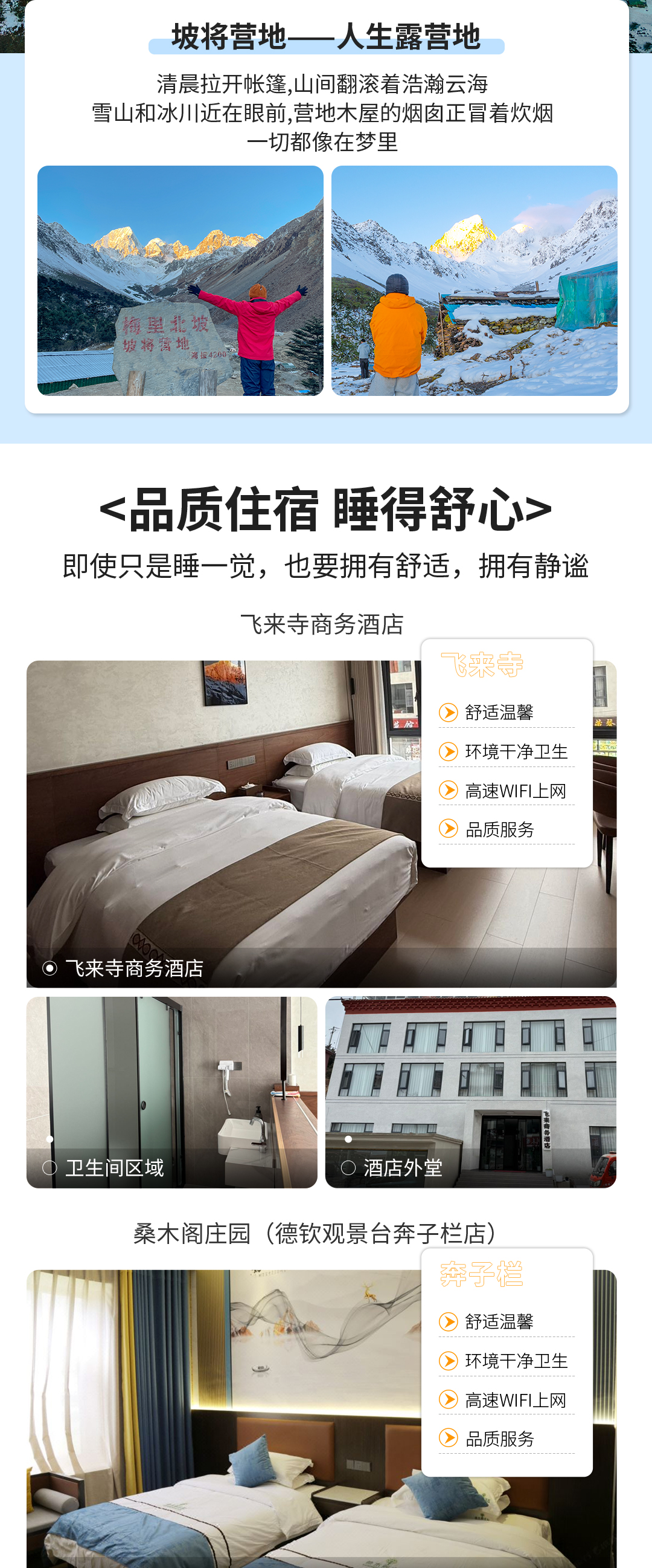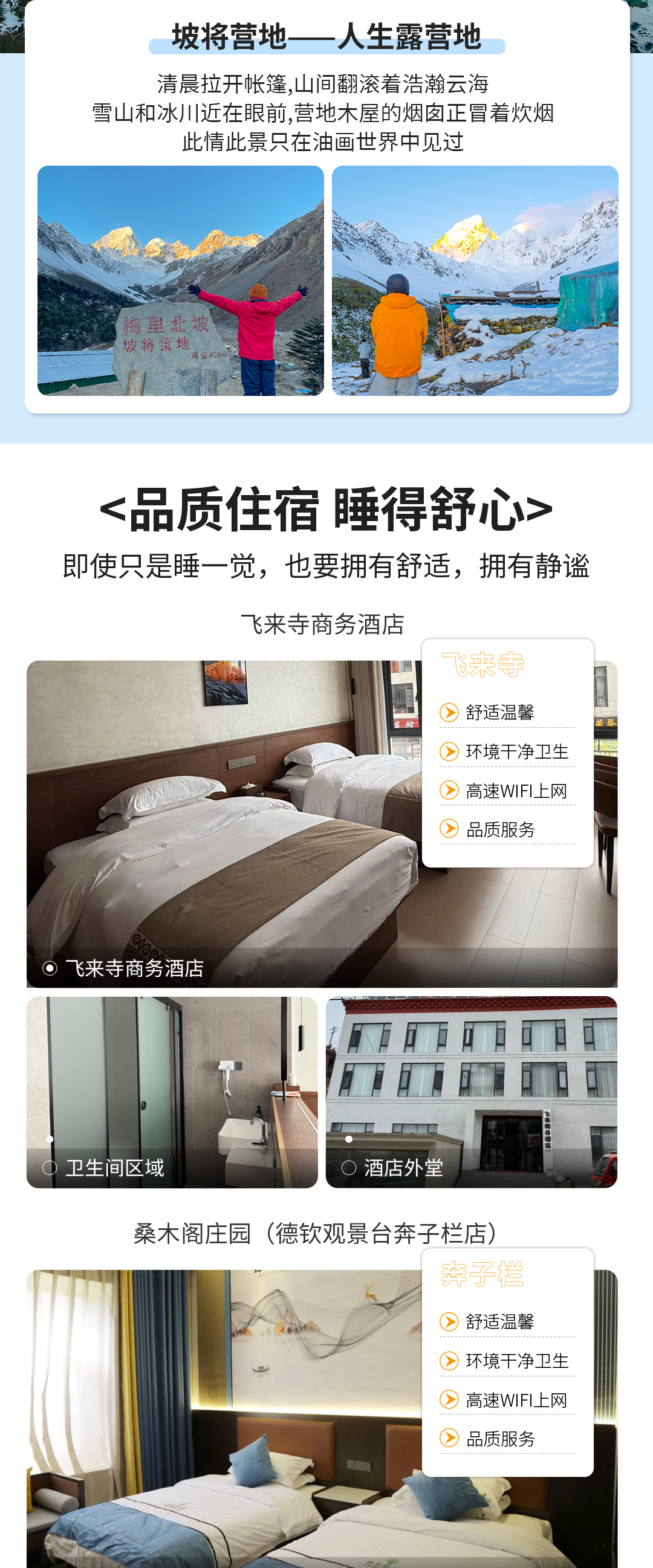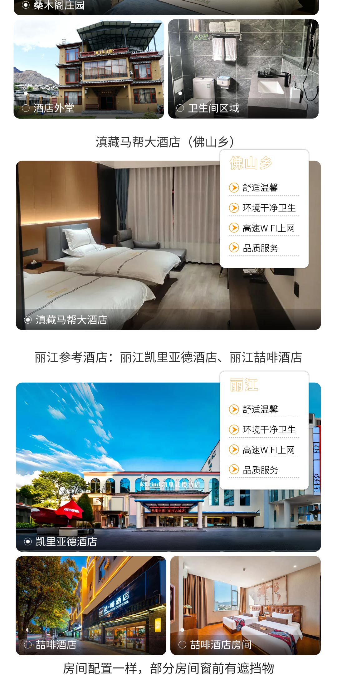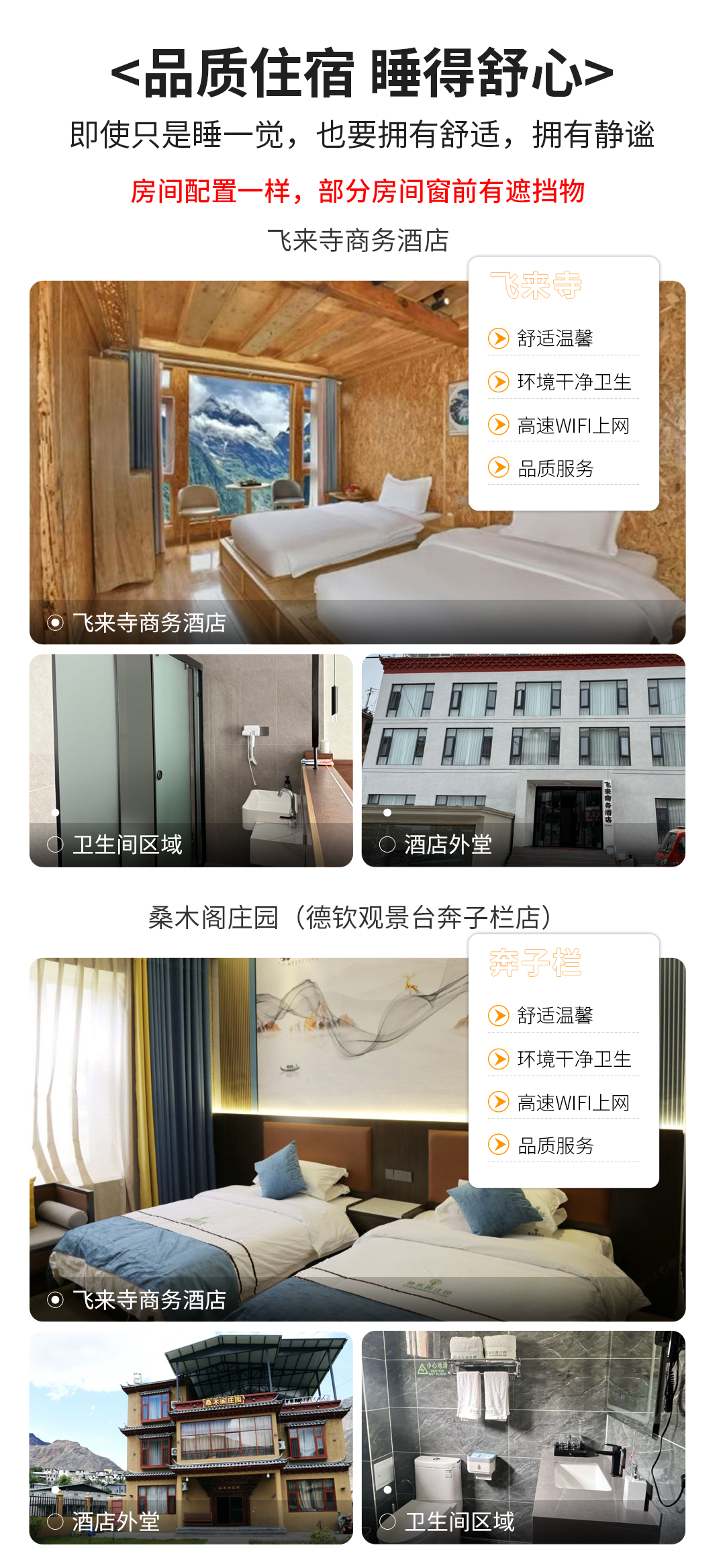 2. 住宿:丽江/飞来寺/奔子栏独卫酒店。