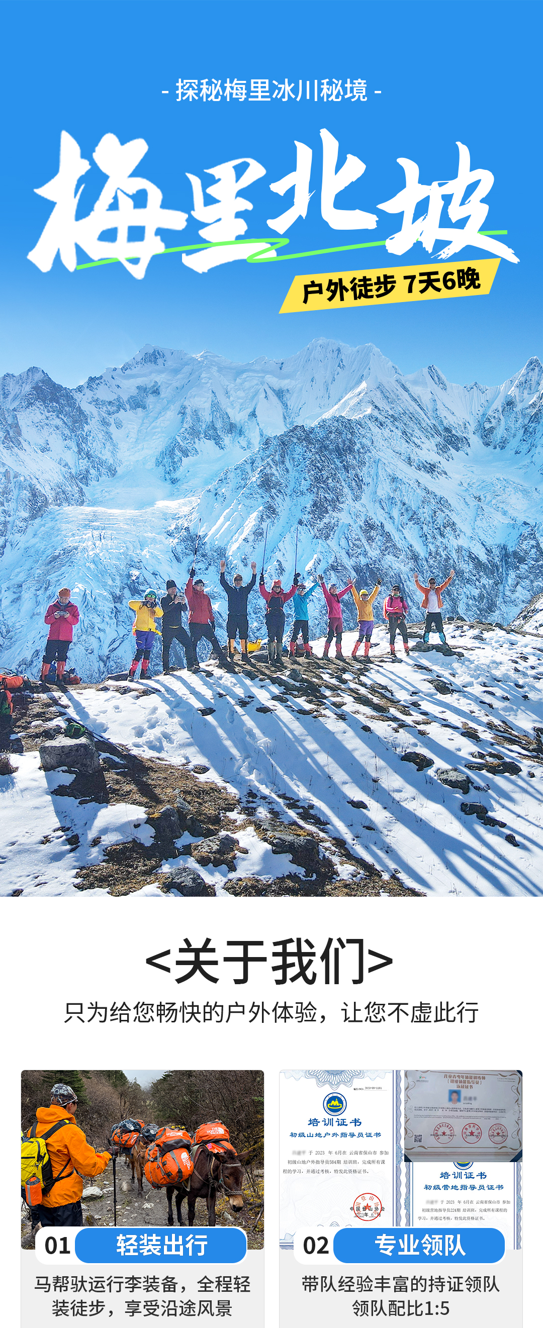 4. 行李运输:马帮运输(个人装备限重15公斤)。