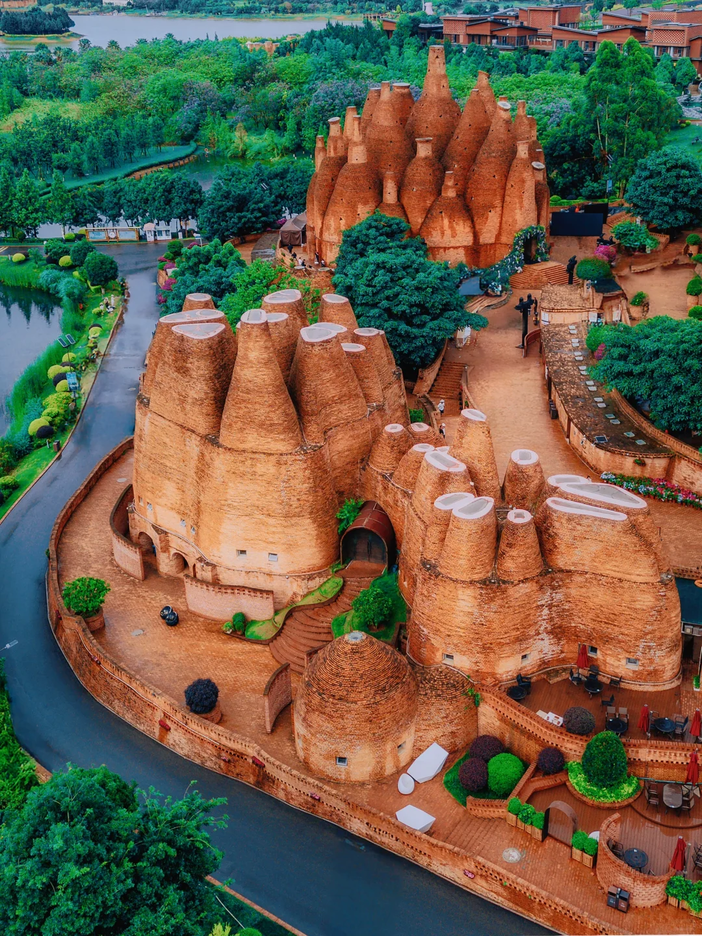 土林游玩结束后驱车前往【弥勒】,抵达弥勒我们游玩具有摩洛哥风格的【东风韵小镇】,古怪的城堡火爆网络--万花筒艺术馆,带着特有的民族风情,粗犷豪放,却又显得如此细腻,建筑外形酷似造型各异的酒瓶,红色的砖墙的艺术形态,将西方穹顶与中式瓦窑相结合,饱含了抽象的后现代主义元素。