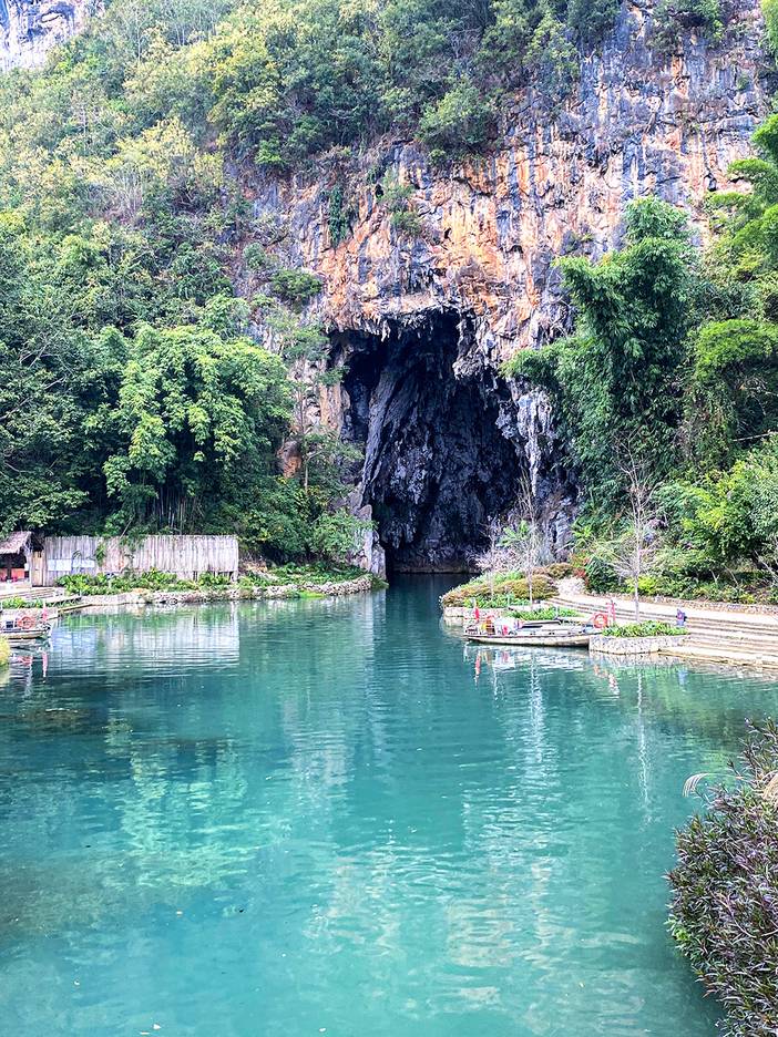游玩结束后出村乘坐景区游船游览汤那河,下船后顺着河边木栈道徒步,沿途观山谷内水流潺潺、树林茂密、原始植被等景观,让我们在秀美的山水之间漫步观景,体会森林氧吧的清新。之后汤那洞乘船出洞,当晚安排入住广南。