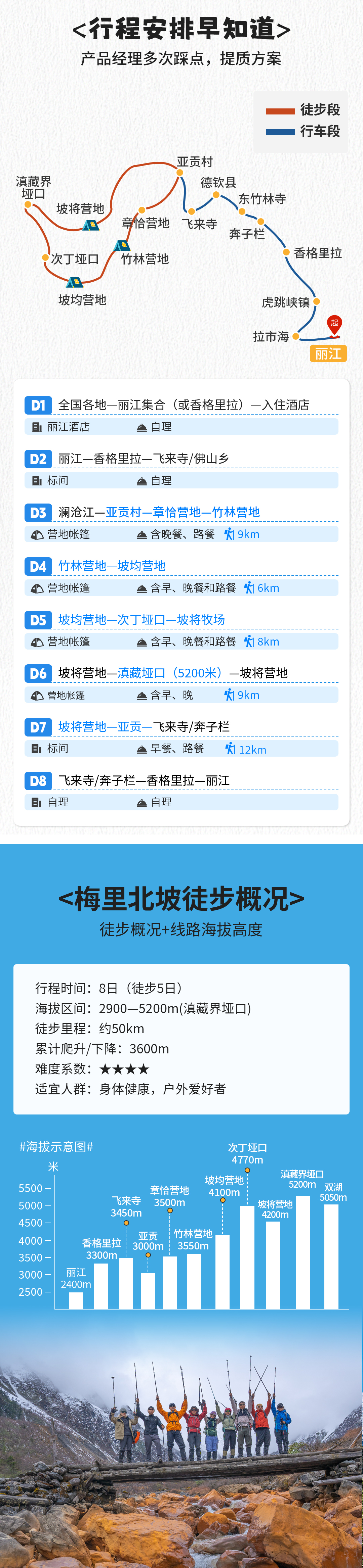 5、体力要求:本次行程全程轻装,每天徒步5~8小时,身体健康,有一定户外经验,无重大疾病史者均可参加。